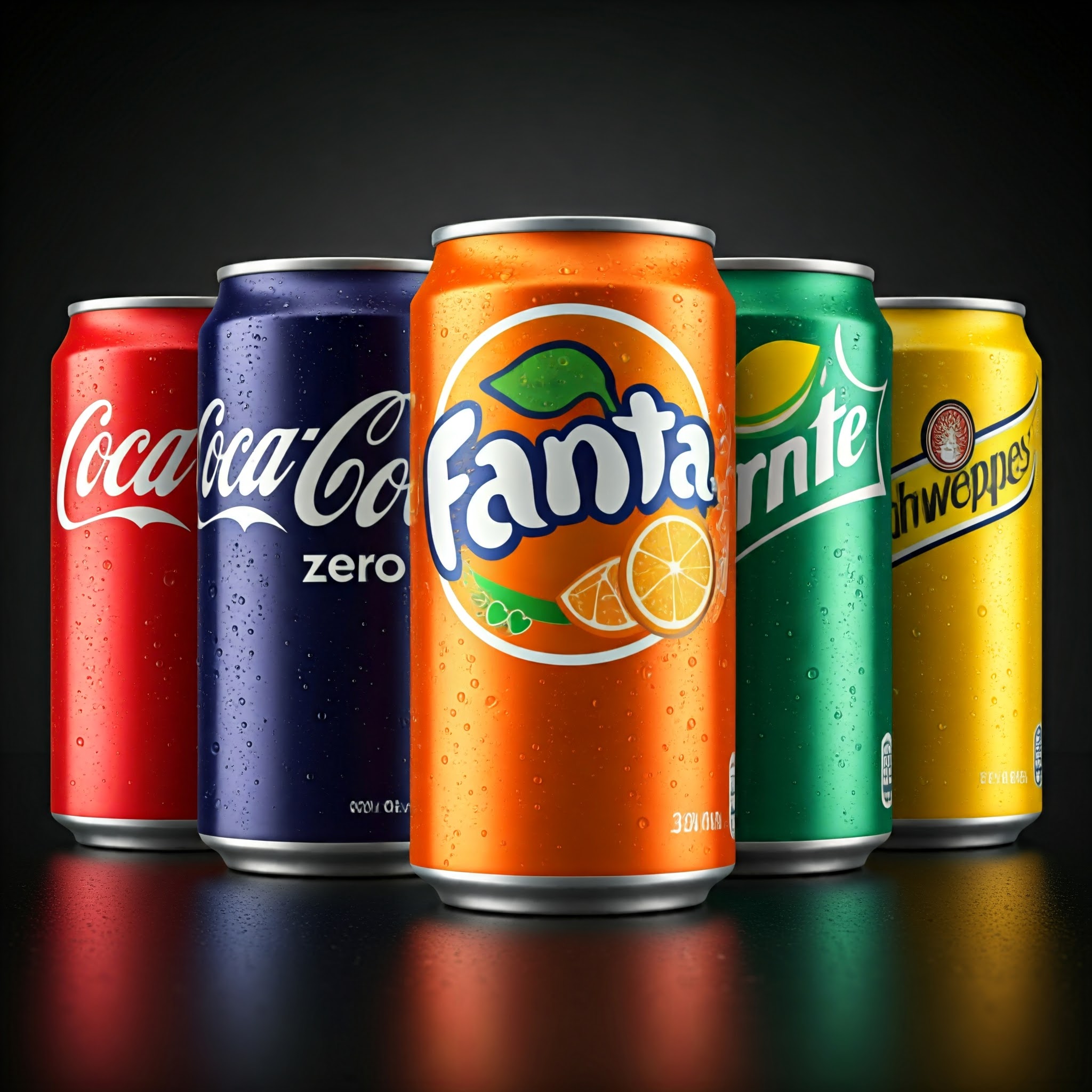 Coca, coca zero, Sprite, fanta uva, fanta laranja.